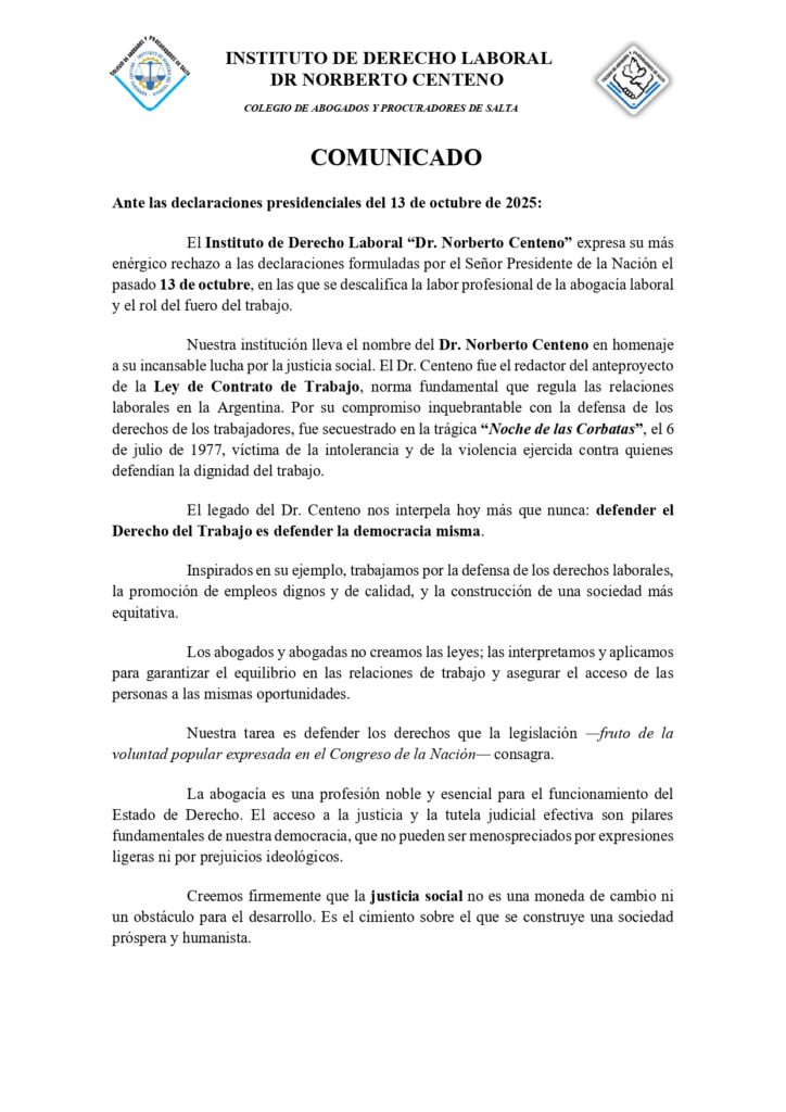 EL COLEGIO DE ABOGADOS Y PROCURADORES DE SALTA INFORMA QUE CON MOTIVO DE LOS HECHOS ACAECIDOS AYER EN ALCAIDIA PROVINCIAL , Y A LOS FINES DE LLEVAR TRANQUILIDAD A LOS COLEGIADOS, SOLAMENTE SE HAN REGISTRADO DAÑOS LEVES EN LAS REJAS PERIFÉRICAS , POR LO CUAL LA ACTIVIDAD DE HOY SE DESARROLLARA CON TOTAL NORMALIDAD EN