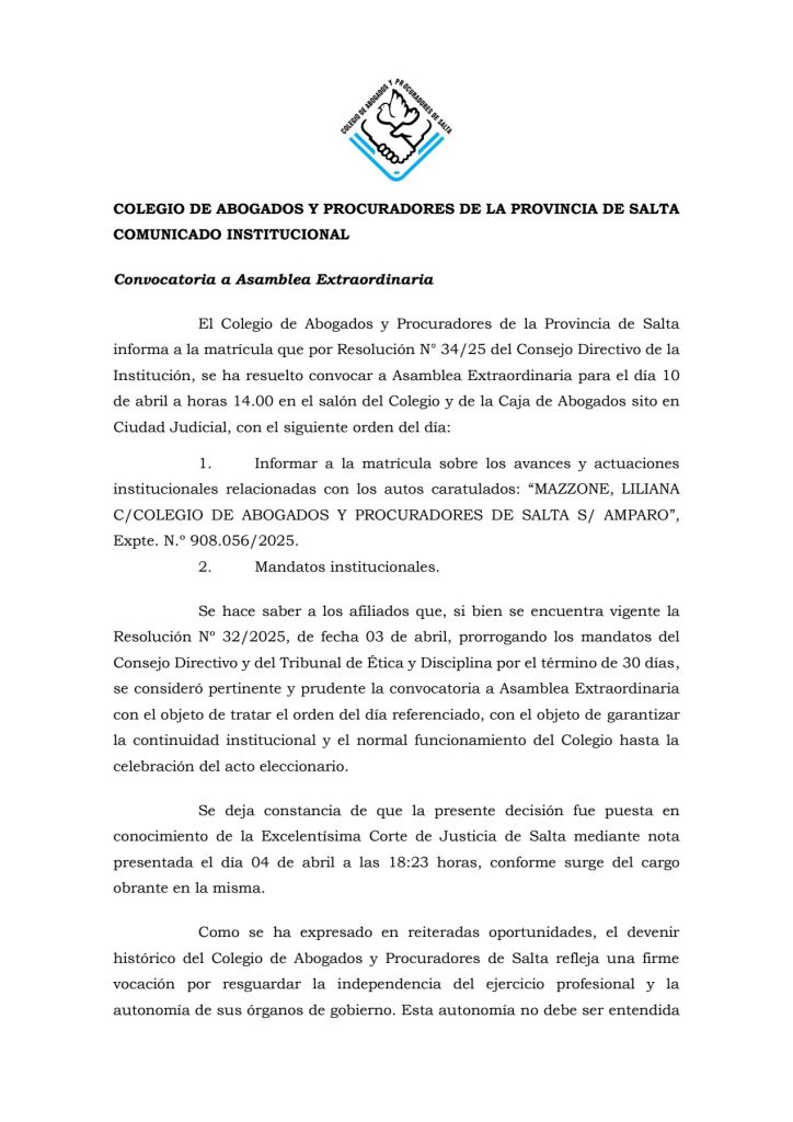 COMUNICADO INSTITUCIONAL- ASAMBLEA EXTRAORDINARIA-