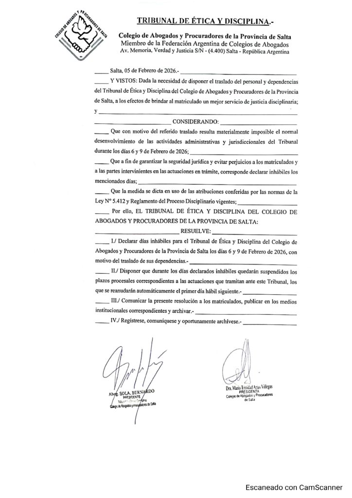 - Funcionamiento Tribunal de Ética y Disciplina 6 y 9 de febrero de 2026 5 febrero, 2026