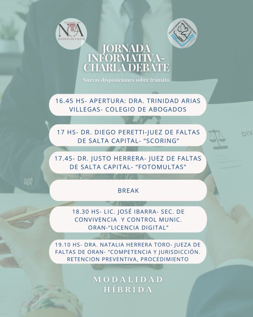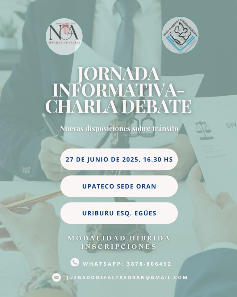 Inscripciones en juzgadodefaltasoran@gmail.com o al WhatsApp 3878806492.