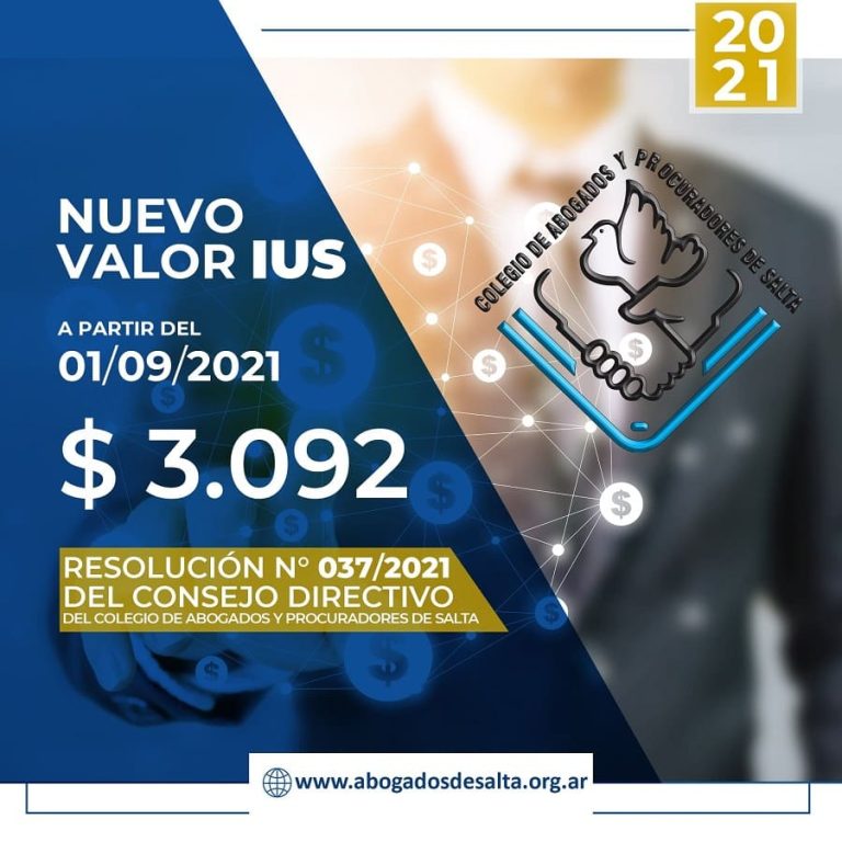 ⚖️ El CONSEJO DIRECTIVO DEL COLEGIO DE ABOGADOS DE SALTA, informa a nuestros matriculados que conforme Resolución Institucional 126/ 2.025 de fecha 03/10/2.025, el valor del IUS es del mes de Octubre es de $ 47.722