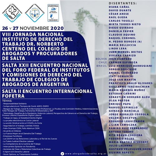 SALTA, 26 y 27 DE NOVIEMBRE DE 2020 – MODALIDAD VIRTUAL