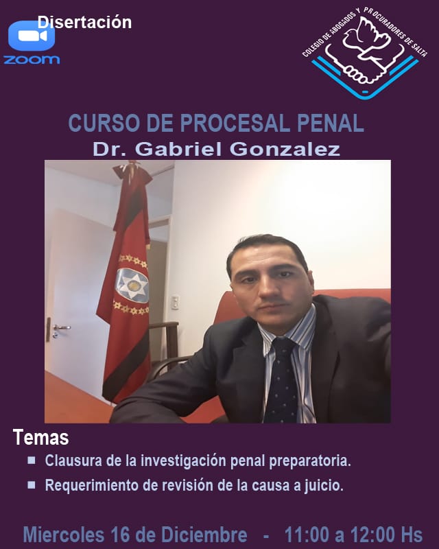 El Colegio de Abogados y Procuradores de la Provincia de Salta informa la realización de la capacitación magistral “LA VENGANZA NARCO” a realizarse el sábado 14 de marzo de 2026 hs. 18:00 en Salón Auditorium de Hptal. San Bernardo, bajo modalidad presencial y virtual. Para mas información: cel. 3874889144 e-mail: centrodeespecializacionforense@gmail.com Atte.- Consejo Directivo CAyPPS